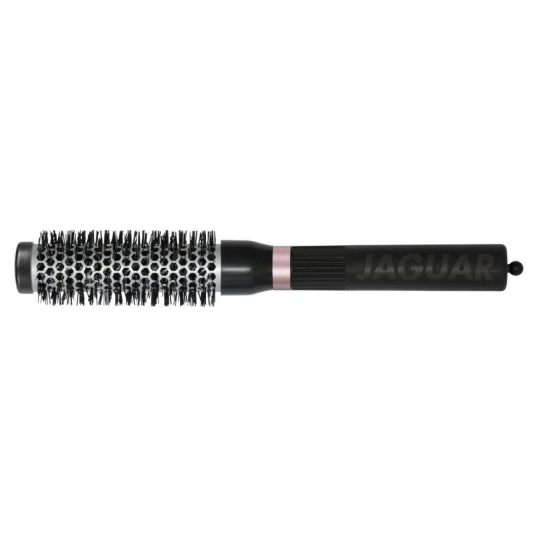 Escova redonda iónica com corpo em alumínio para um tempo de secagem reduzido. A disposição especial das cerdas e o cilindro liso de alumínio de uma só peça, evita que o cabelo se enrede ou se estrague. Com um acessório (pino) na extremidade para ajudar a fazer divisões no cabelo. Cabo antideslizante agradável ao toque e à mão.