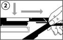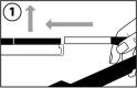 1. Coloque a guia da lâmina na lâmina de barbear e deslize até o ponto de impacto. A lâmina de barbear está agora fixa no lugar e pode ser levantada até o topo.