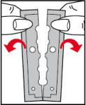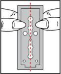 1. Deixe as lâminas de barbear no papel e quebre ao longo do eixo do meio, com a ponta da seta apontando para cima.