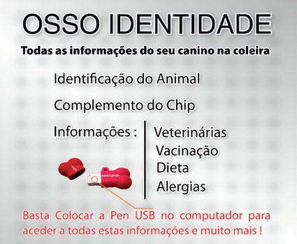 Osso Identidade é uma pen compatível com qualquer sistema operativo que lhe permite fornecer a identidade do seu animal em casos de emergência.