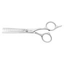 As tesouras de cabeleireiro são perfeitas para todas as técnicas de corte, graças ao seu fio de corte semi-integrado e à lâmina longa e convexa. O ângulo de corte plano permite um corte perfeito, e a forma fina das tesouras de cabeleireiro torna-as perfeitas para contornos finos. A tesoura de texturização possui 33 dentes com prisma para uma ótima qualidade de corte. A outra lâmina da tesoura tem uma lâmina de corte polida. Graças à lamina polida, a tesoura de cabeleireiro apresenta ação de corte suave e duradoura.