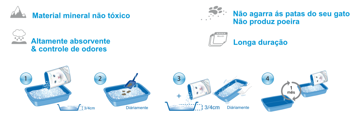 Não tóxico, a areia para gatos Capsüll® mantêm a caixa de areia do gato limpa e seca.