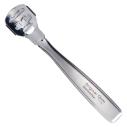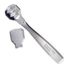 O corta calos CREDO Profi é único devido à sua funcionalidade e elegância. Feito de aço inoxidável anti-ferrugem, milhares de podólogos profissionais usam diariamente. O cabo oco é fabricado seguindo a pericia e tradição da produção de prata de prestígio derramando uma mistura de cimento e chumbo. Esta combinação é aquecida e constrói em conjunto com o suporte inserido uma unidade para a eternidade. Devido à quantidade precisa de seus componentes, o corta calos CREDO Profi é bem equilibrado e dá uma sensação segura enquanto trabalha com ele. Utilizar o corta calosCREDO Profi no sentido longitudinal. Cada caixa individual é fornecida com um clipe para aplainar os calcanhares após o tratamento. Este clip-on-rasp pode ser facilmente colocado no suporte. Recomendamos a utilização deste corta calos CREDO Profi en conjunto com as laminas CREDO Profi de caixa prateada. Diabéticos e hemofilicos devem consultar um médicos antes da sua utilização.