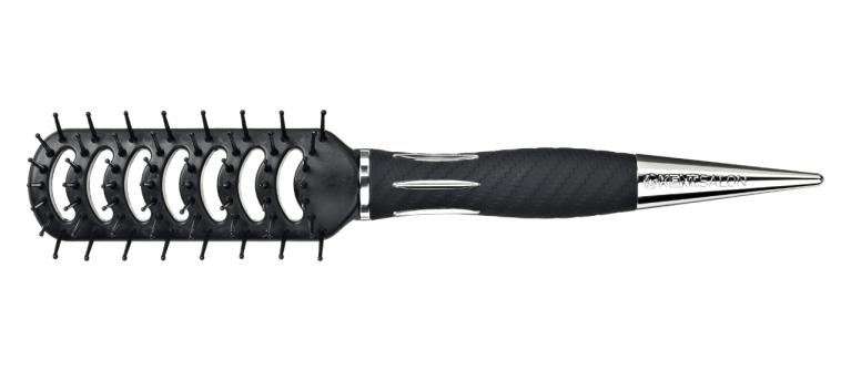 A cabeça fantástica desta pequena escova é moldada como uma única peça, o que significa que não há arestas afiadas para danificar ou cortar o cabelo. Esta escova apresenta 32 tufos de cerdas de javali naturais combinado com pinos moldados para melhorar o acabamento e o brilho do cabelo. O design ventilado com sete orifícios permite queo ar chegue até ao nível da raiz, o que por sua vez transforma o processo de secagem a secador, melhorando com segurança os tempos de secagem e, por sua vez, ajuda a segurar e controlar quando desembaraçar ou estilizar o cabelo.