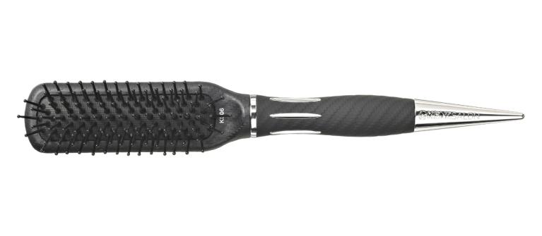 Bem-vindo a um novo nível de excelência. O punho ergonómico foi desenhado para adaptar-se a todos os tamanhos de mão, do delicado ao peso pesado, tem uma sensação enquanto macio e liso, é firme e levemente texturado para maior firmeza. Começando com um pescoço esbelto, os seis detalhes (frisos) cromados elevados oferecem o equilíbrio perfeito entre aderência e deslizamento, permitindo que trabalhe com a escova facilmente sem comprometer a estabilidade e técnica. Um corpo robusto com um punho que lentamente afunila terminando numa ponta polida suave para apanhar e seccionar o cabelo. A ponteira de metal foi trabalhada a partir de aço para equilibrar perfeitamente o peso da escova e gravada com as insígnias "Kent.Salon" adicionando á exclusividade das escovas, perfeição e qualidade inquestionável.