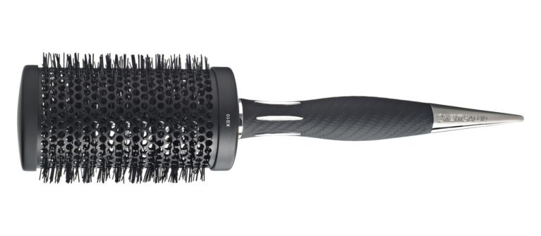 Bem-vindo a um novo nível de excelência. O punho ergonómico foi desenhado para adaptar-se a todos os tamanhos de mão, do delicado ao peso pesado, tem uma sensação enquanto macio e liso, é firme e levemente texturado para maior firmeza. Começando com um pescoço esbelto, os seis detalhes (frisos) cromados elevados oferecem o equilíbrio perfeito entre aderência e deslizamento, permitindo que trabalhe com a escova facilmente sem comprometer a estabilidade e técnica. Um corpo robusto com um punho que lentamente afunila terminando numa ponta polida suave para apanhar e seccionar o cabelo. A ponteira de metal foi trabalhada a partir de aço para equilibrar perfeitamente o peso da escova e gravada com as insígnias "Kent.Salon" adicionando á exclusividade das escovas, perfeição e qualidade inquestionável.