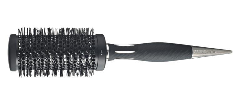 Bem-vindo a um novo nível de excelência. O punho ergonómico foi desenhado para adaptar-se a todos os tamanhos de mão, do delicado ao peso pesado, tem uma sensação enquanto macio e liso, é firme e levemente texturado para maior firmeza. Começando com um pescoço esbelto, os seis detalhes (frisos) cromados elevados oferecem o equilíbrio perfeito entre aderência e deslizamento, permitindo que trabalhe com a escova facilmente sem comprometer a estabilidade e técnica. Um corpo robusto com um punho que lentamente afunila terminando numa ponta polida suave para apanhar e seccionar o cabelo. A ponteira de metal foi trabalhada a partir de aço para equilibrar perfeitamente o peso da escova e gravada com as insígnias "Kent.Salon" adicionando á exclusividade das escovas, perfeição e qualidade inquestionável.