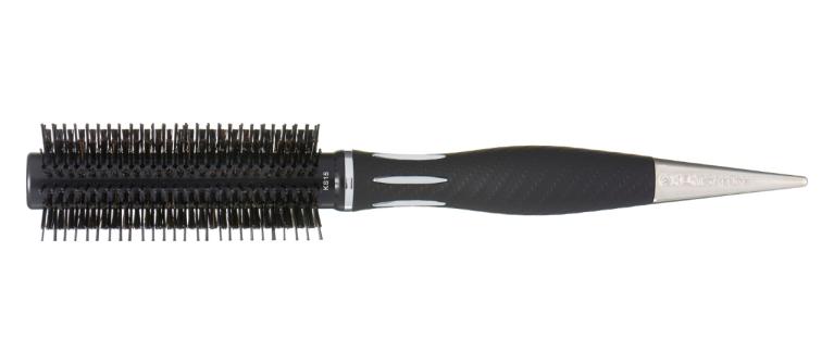 Bem-vindo a um novo nível de excelência. O punho ergonómico foi desenhado para adaptar-se a todos os tamanhos de mão, do delicado ao peso pesado, tem uma sensação enquanto macio e liso, é firme e levemente texturado para maior firmeza. Começando com um pescoço esbelto, os seis detalhes (frisos) cromados elevados oferecem o equilíbrio perfeito entre aderência e deslizamento, permitindo que trabalhe com a escova facilmente sem comprometer a estabilidade e técnica. Um corpo robusto com um punho que lentamente afunila terminando numa ponta polida suave para apanhar e seccionar o cabelo. A ponteira de metal foi trabalhada a partir de aço para equilibrar perfeitamente o peso da escova e gravada com as insígnias "Kent.Salon" adicionando á exclusividade das escovas, perfeição e qualidade inquestionável.