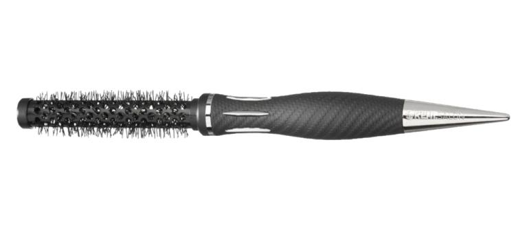 Bem-vindo a um novo nível de excelência. O punho ergonómico foi desenhado para adaptar-se a todos os tamanhos de mão, do delicado ao peso pesado, tem uma sensação enquanto macio e liso, é firme e levemente texturado para maior firmeza. Começando com um pescoço esbelto, os seis detalhes (frisos) cromados elevados oferecem o equilíbrio perfeito entre aderência e deslizamento, permitindo que trabalhe com a escova facilmente sem comprometer a estabilidade e técnica. Um corpo robusto com um punho que lentamente afunila terminando numa ponta polida suave para apanhar e seccionar o cabelo. A ponteira de metal foi trabalhada a partir de aço para equilibrar perfeitamente o peso da escova e gravada com as insígnias "Kent.Salon" adicionando á exclusividade das escovas, perfeição e qualidade inquestionável.