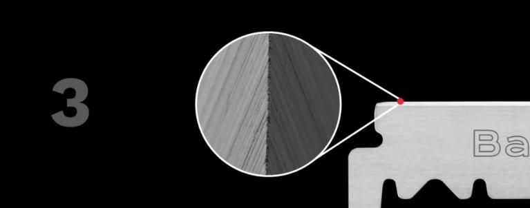 As lâminas BARBERO Platinum em aço inoxidável são fabricadas com aço inoxidável de alta qualidade. Seu fio é refinado com chromo e platina, e um barbear suave é garantido por uma nano camada de PTFE